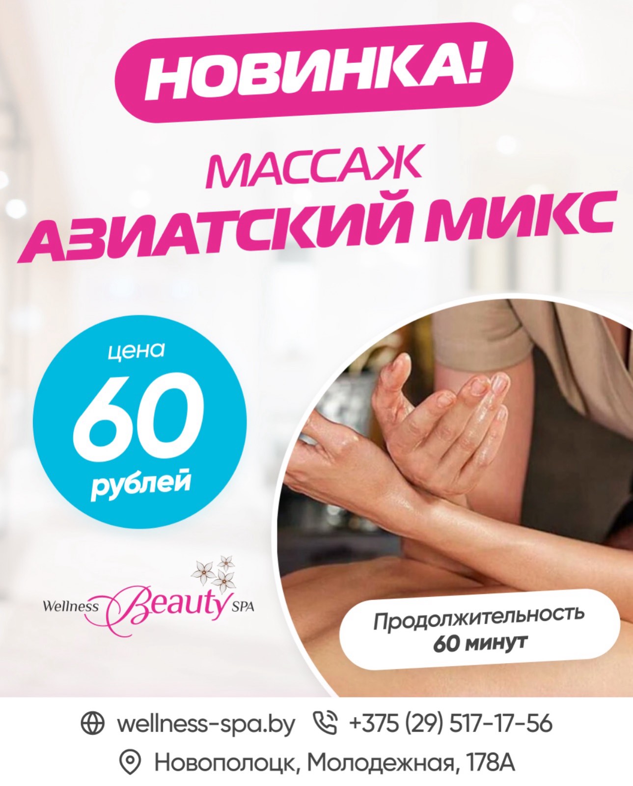 Массаж Азиатский Микс - это очаровательное смешение мышечного, точечного массажей, мягкой мануальной терапии и необыкновенной нежности рук с применением ароматических масел. После процедуры кожа становится нежной, благоухающей, арома масла придают ей упругость, питают, увлажняют и тонизируют.
